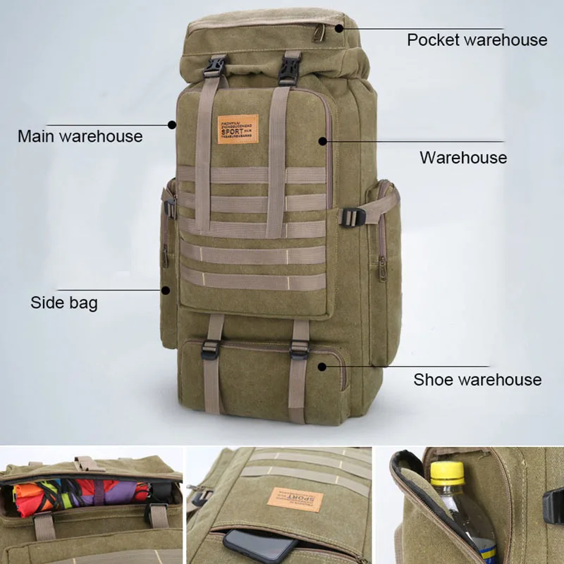 80L 600D Nylon Waterproof Trekking Hunting Bags Backpack Outdoor Rucksacks Outdoor Training Molle Tactical Knapsacks