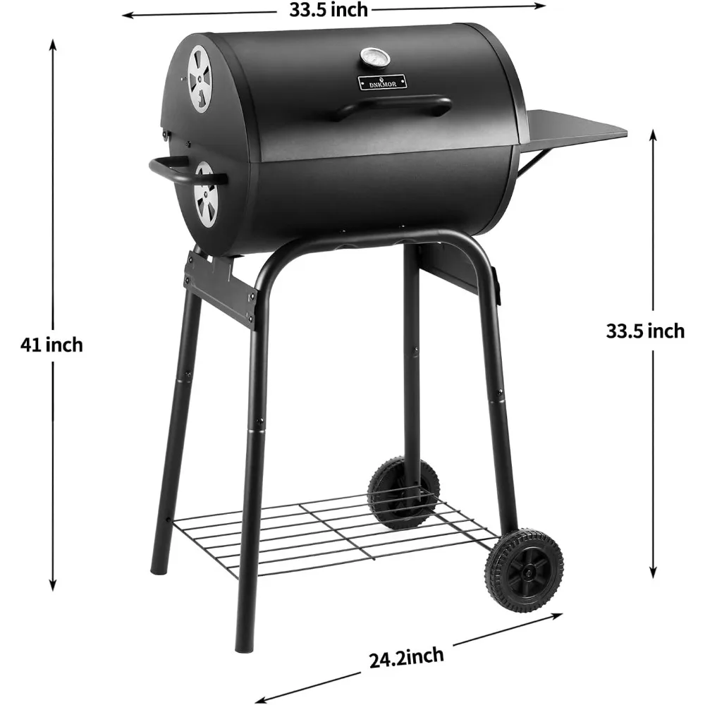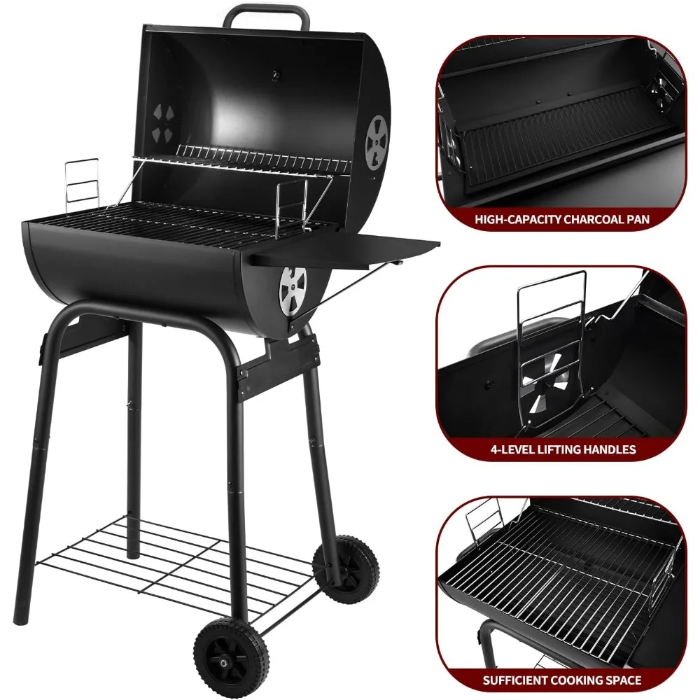 Charcoal Grills Outdoor BBQ Grill, Barrel Charcoal Grill with Side Table, with Nearly 500 Sq.In. Cooking Grid Area, Outdoor Back