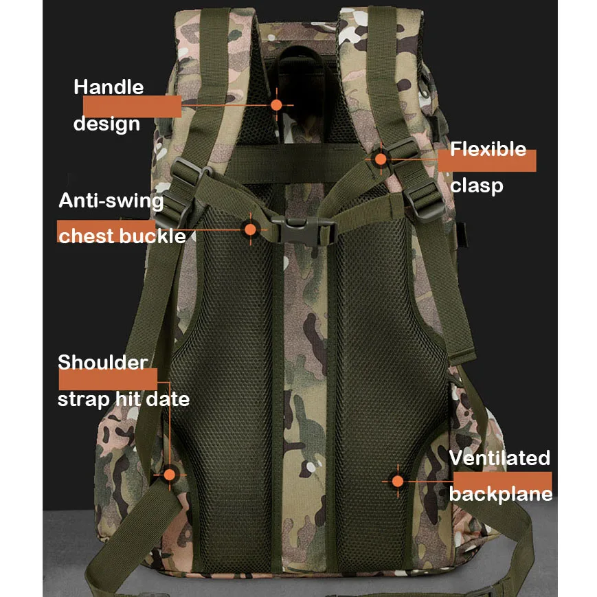 Oulylan 60L Outdoor Camouflage Sports Bag Hiking Tactical Backpack Waterproof Camping Storage Travel Rucksack For Men