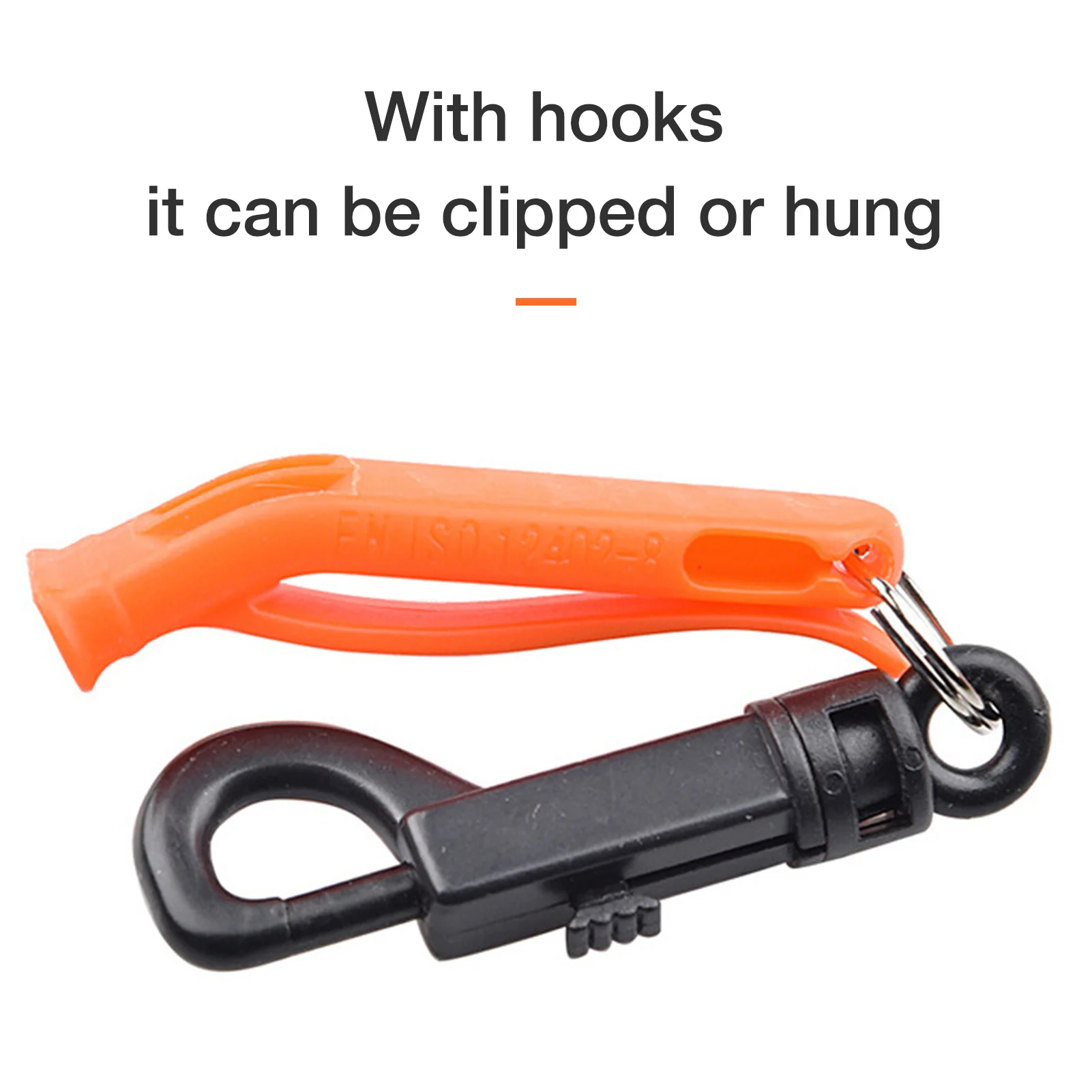 Constructed of PP material, the Emer-gency Whistles with Clip is long-lasting and compact. Featuring an easily identifiable orange color, you can clearly spot it when you need it.